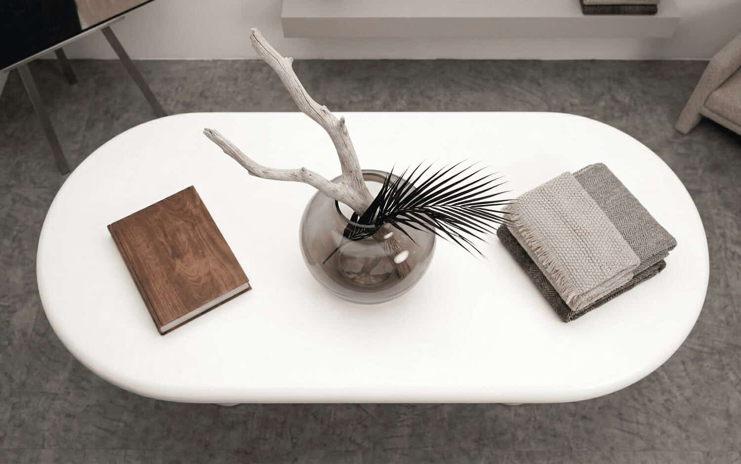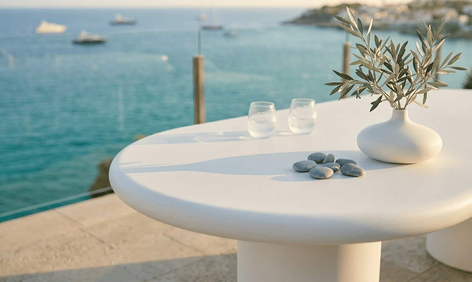 A diferencia de las mesas de piedra natural o madera lacada, el Corian® mantiene una temperatura neutra al tacto y no se amarillea con el tiempo. Es la elección predilecta para proyectos de interiorismo de alto nivel, donde se busca una pieza que combine la belleza de una escultura con la funcionalidad de un uso diario intensivo.